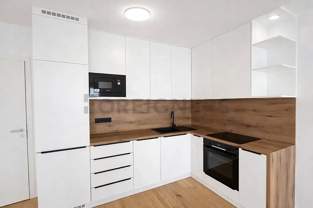 Byt je vybavený kuchyňskou linkou se všemi spotřebiči a v koupelně bude pračka. Byt je připravený k okamžitému nastěhování. Byt nabízí kvalitní městské bydlení se službami.