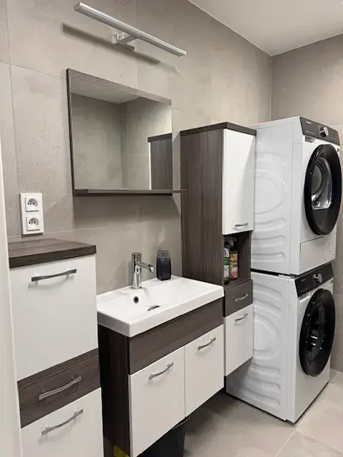 Byt je kompletně vybaven a nachází se ve druhém patře. Moderní architektura a kvalitní vybavení zajišťují pohodlné bydlení v osobním vlastnictví. K dispozici je také jedno parkovací místo, což zajišťuje pohodlné parkování přímo u domu.