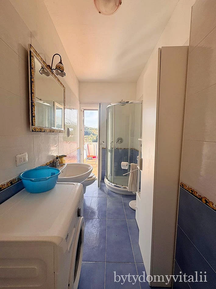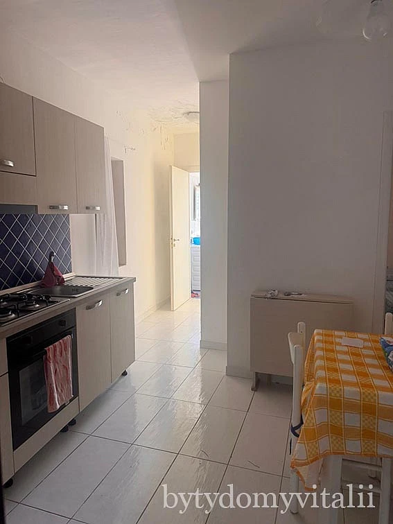 V bytě je nová kuchyň a velká zrekonstruovaná koupelna s východem na terasu. Pěšky na pláž dojdete během 20 minut. Autem 4 minuty.