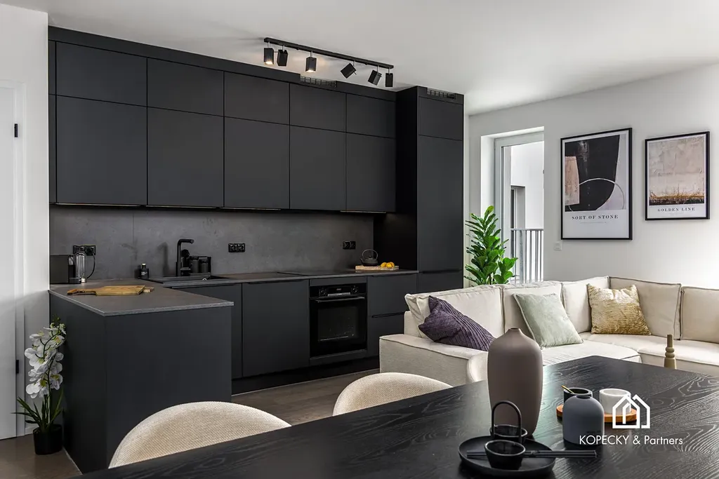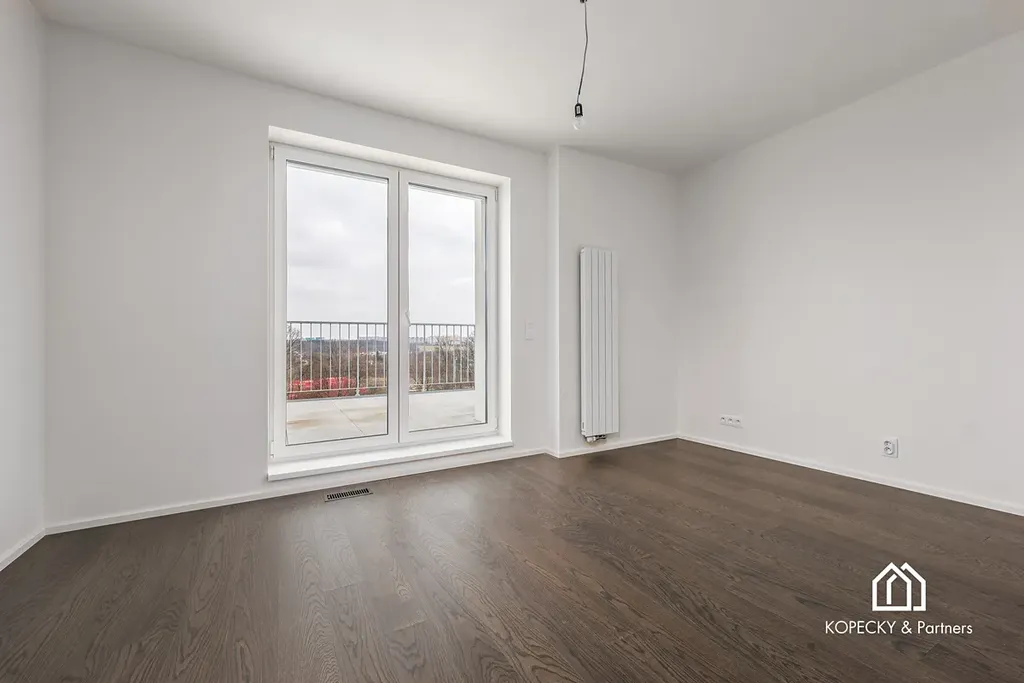 Byt o užitné ploše 119 m² je navržen tak, aby splňoval náročné požadavky na pohodlí i praktičnost. Hlavní obytnou část tvoří světlý obývací pokoj s kuchyňským koutem o rozloze téměř 30 m², který je díky velkým francouzským oknům příjemně prosvětlen a nabízí dostatek prostoru pro rodinné posezení nebo setkání s přáteli. Nechybí zde tři prostorné ložnice a další samostatná místnost, kterou lze využít jako pracovnu, dětský pokoj či pokoj pro hosty.