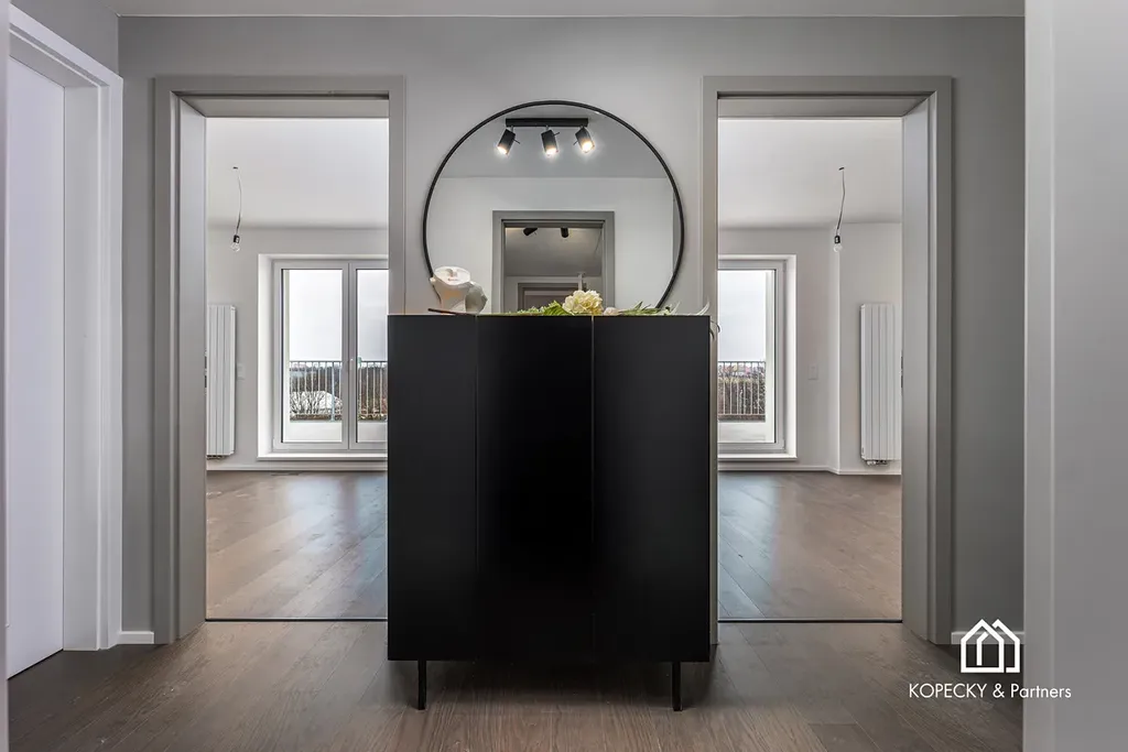 Hledáte moderní a komfortní bydlení v klidné části Prahy, kde můžete mít přírodu na dosah a přitom snadno dojíždět do centra? Tento prostorný byt 5+kk je součástí novostavby luxusního rezidenčního projektu v Hostavici, jedné z nejoblíbenějších lokalit Prahy 9.