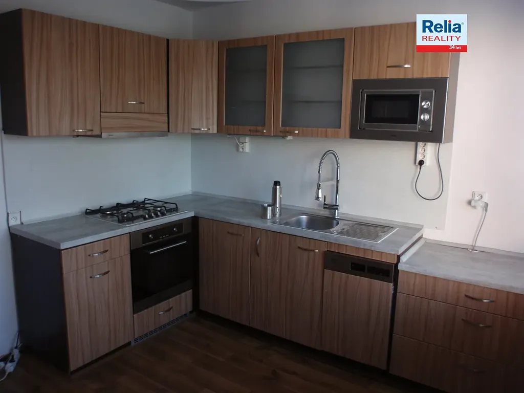 Nabízíme k pronájmu byt 3+1 s balkónem v panelovém domě obklopeném zelení. Dům je umístěn v ulici, která není součástí velkého sídliště a v okolí je možné parkovat. Byt se nachází se ve 3. patře a je ideální pro rodinu, příp. sdílené bydlení (2 pokoje mají samostatný vstup). Ve vstupní chodbě v předsíni je vestavěná skříňová sestava s věšákem a úložným prostorem vyrobená na míru. Kuchyňská linka je vybavena plynovou varnou deskou a vestavěnou troubou, digestoří, myčkou, mikrovlnkou, příp. i nádobím. Byt má dostatečnou kapacitu úložného prostoru, další vestavěné skříně jsou i v ložnici. Koupelna je s vanou, WC samostatné. Pro pohodlí i soukromí jsou okna bytu doplněna žaluziemi. Výhodou je vlastní plynový kotel na topení a ohřev vody, odběr plynu a elektřiny má nájemník na vlastní smlouvu. V přízemí domu je k dispozici společný prostor, který slouží k uložení kol a kočárků. Nájem od 1.3.26, po domluvě možná i dříve.