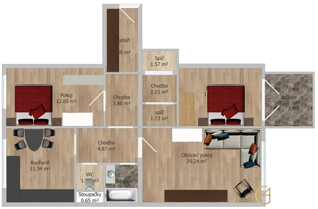 – 2 úložné prostory přímo v bytě