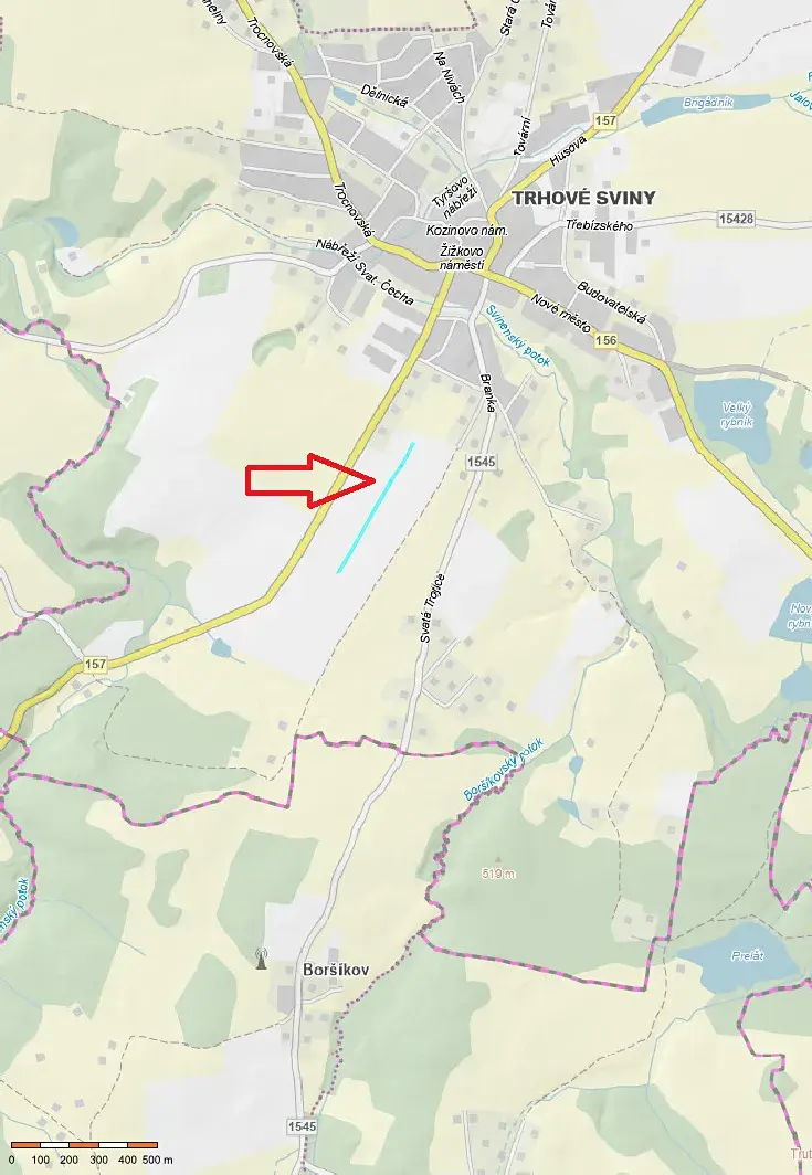 výborná dopravní dostupnost – silnice II. třídy cca 150 m od pozemku
