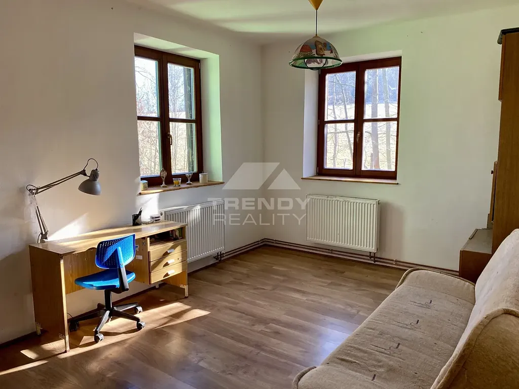 Obytná část cihlového rodinného domu o celkové podlahové ploše 230 m² se skládá ze dvou částí. První ta hlavní o dispozici 5+1 s podlahovou plochou 180 m² se sestává v přízemí domu z kuchyně, obývacího pokoje, WC a technické místnosti, v 1.patře pak z ložnice, tří pokojů a koupelny s WC. Druhá část domu se samostatným vchodem a bytovou jednotkou o dispozici 1+1 s podlahovou plochou 50 m². Vytápění celého domu je zajištěno kotlem na tuhá paliva (dřevo, dostatek vlastních zdrojů), ohřev TUV pak kombinací kotle a el. bojleru. SUV je zajištěna vrtem o hloubce 40 m s dostatečnou vydatností, na který je napojen nejen dům, ale i všechny ostatní objekty.