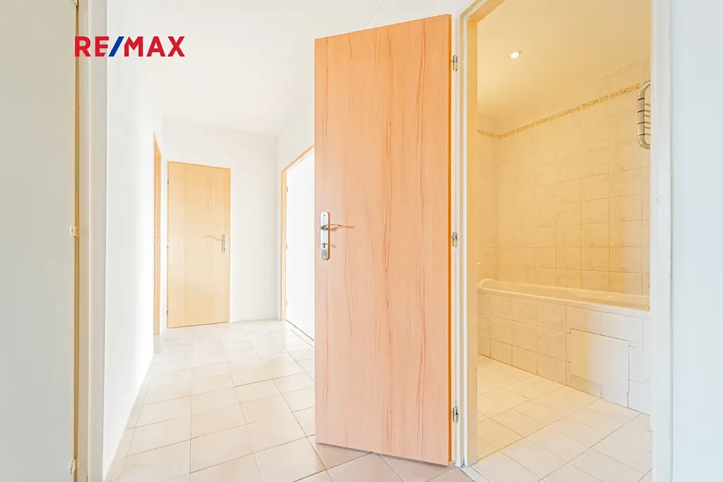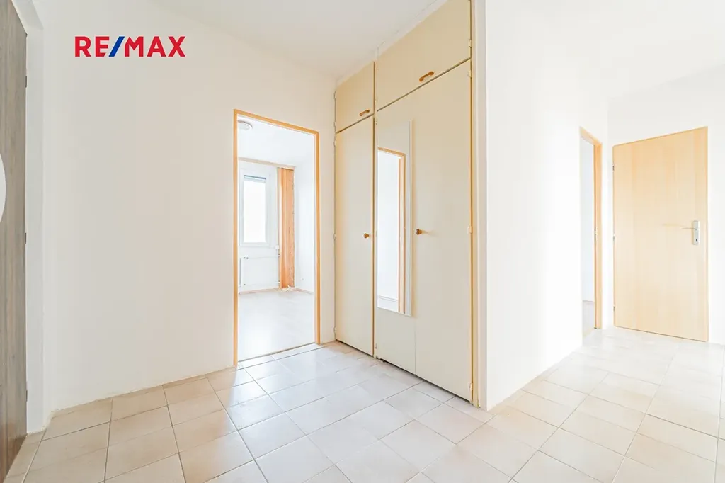 Dispozice bytu: vstupní chodba, ložnice, dětský pokoj, šatna, koupelna s vanou a WC, obývací pokoj propojený s kuchyní + samostatná komora na chodbě před bytem. K bytu patří také sklepní kóje v suterénu.