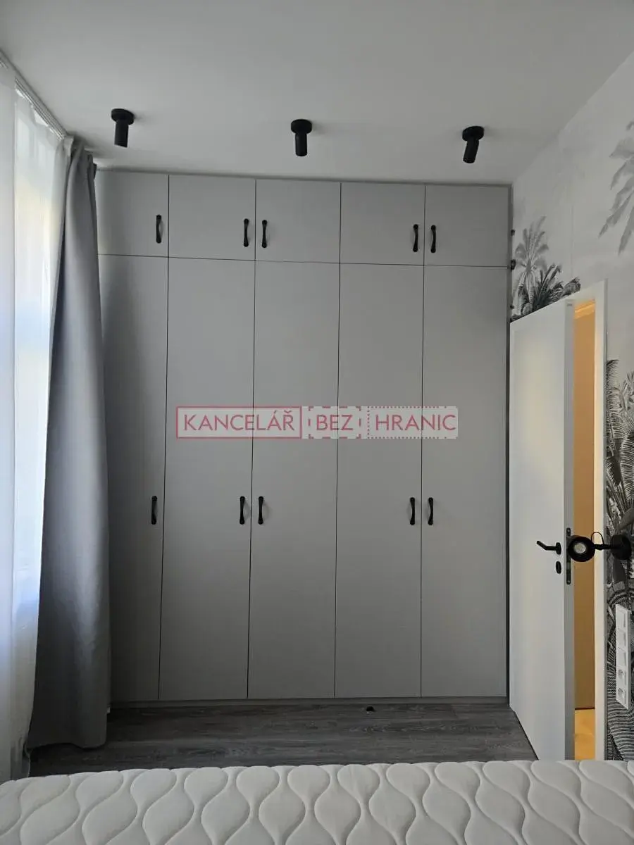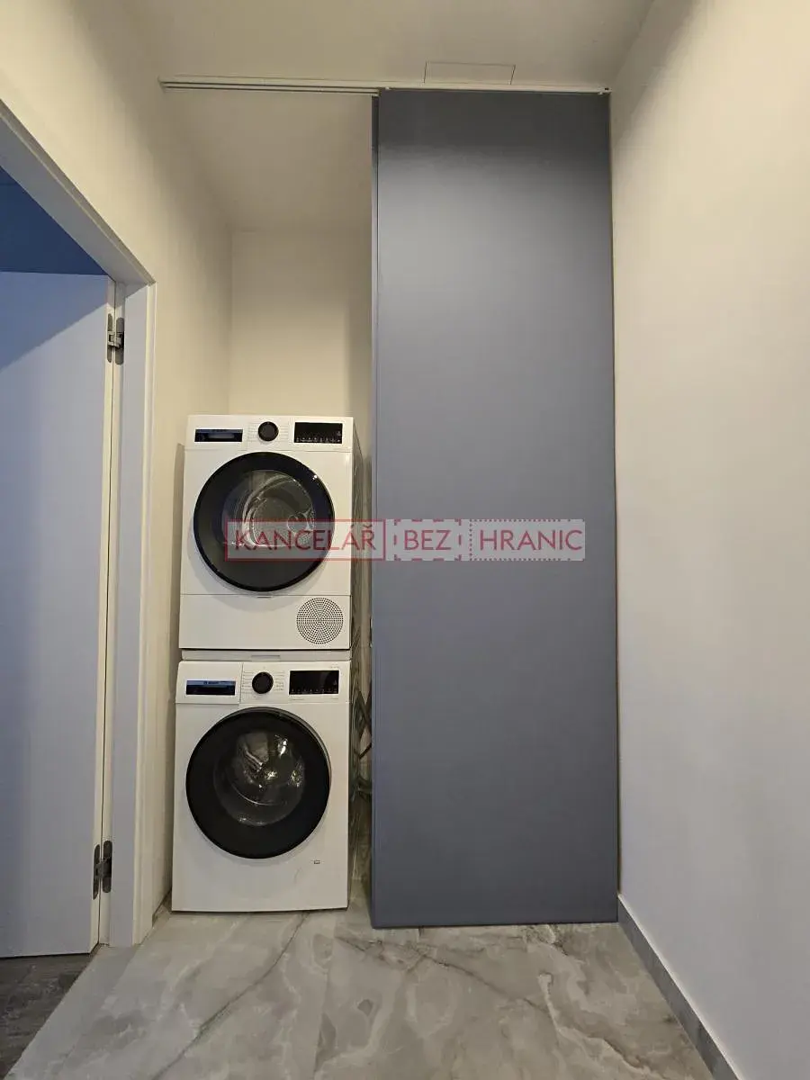 Dispozice bytu nabízí vstupní chodbu s vestavěnými skříněmi, která plynule navazuje na praktickou technickou část s pračkou, sušičkou a novým kondenzačním plynovým kotlem, oddělitelnou elegantní japonskou posuvnou stěnou. Klidná ložnice orientovaná do vnitrobloku disponuje velkou vestavěnou skříní, klimatizací a architektonickým výklenkem vhodným pro domácí pracovnu. Nadstandardně řešená koupelna je vybavena podlahovým vytápěním, prostorným walk-in sprchovým koutem a kvalitní sanitou. Dominantou bytu je světlý obývací prostor s kuchyňským koutem, který díky vysokým stropům a velkým oknům působí mimořádně vzdušně a reprezentativně.