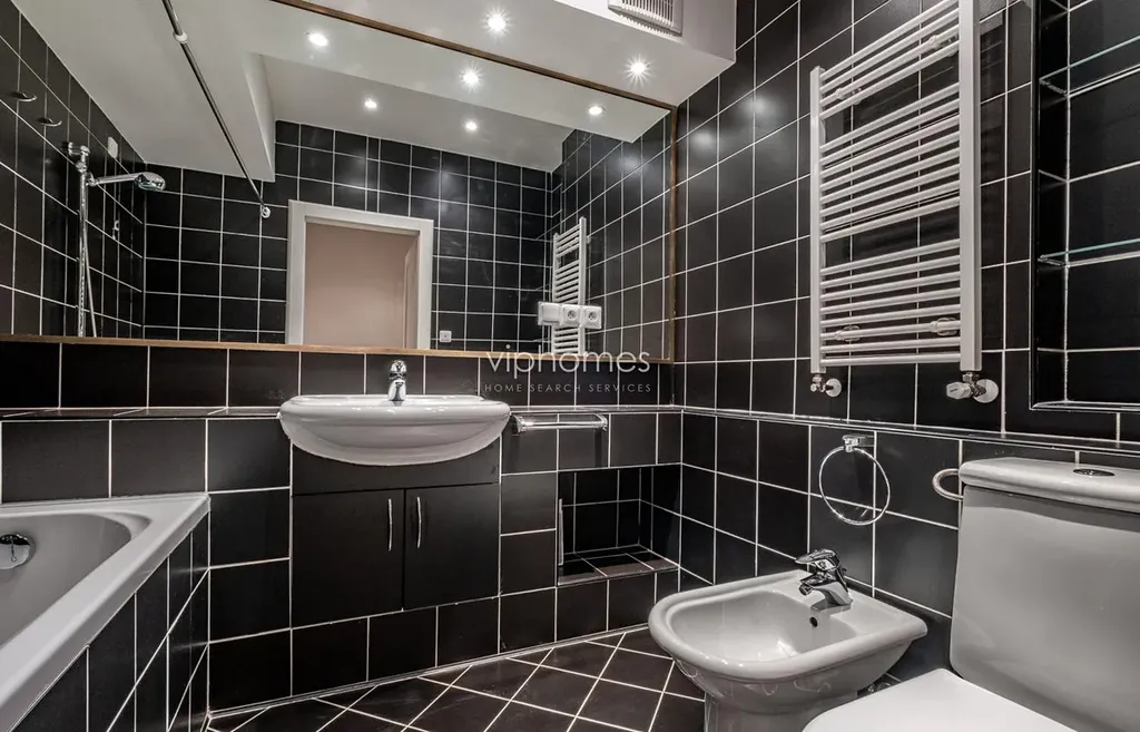 Interiér bytu nabízí vstupní halu, obývací pokoj s jídelním koutem, kuchyň vybavenou všemi potřebnými spotřebiči, (sporák, trouba, mikrovlnná trouba, lednice, mrazák, myčka), 2 ložnice, 2 koupelny, 2 šatny. Na podlahách parkety, obložení z originálních italských dlaždic, vestavěné skříně, myčka nádobí, pračka/sušička, internetové a satelitní TV připojení, domácí videotelefon. Internet je k dispozici za extra poplatek (není zahrnut v ceně pronájmu).