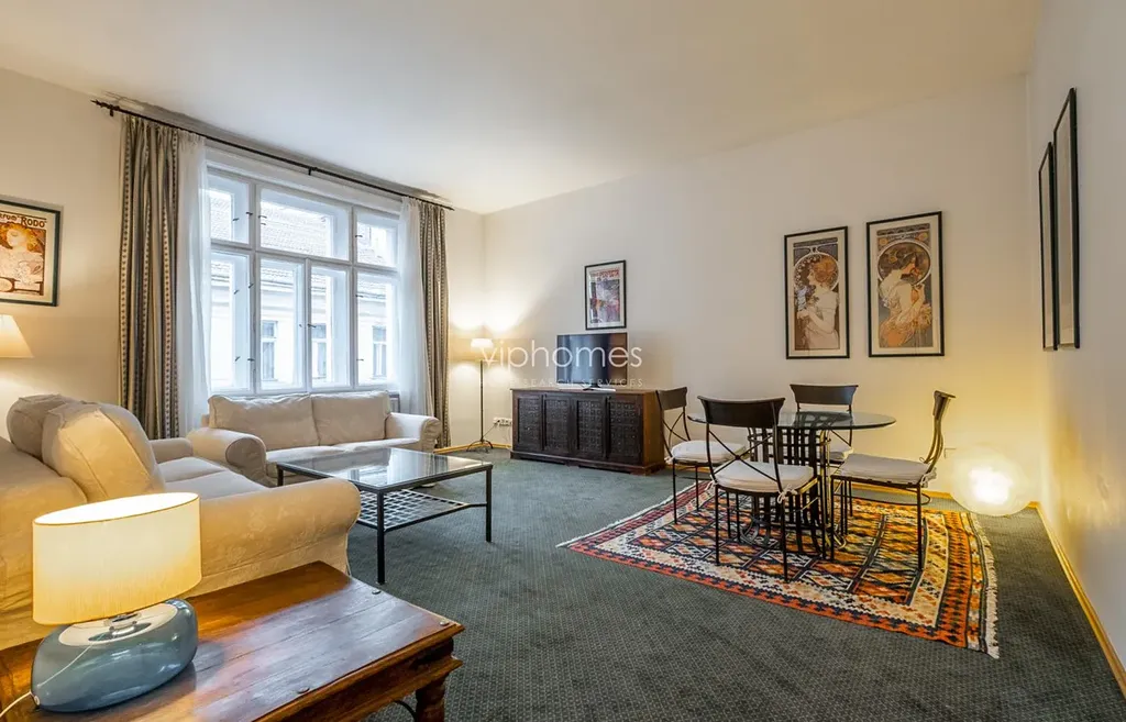 Stylově zařízený byt ve 3. patře kompletně zrekonstruované historické budovy situované v těsné blízkosti Karlova náměstí, v pěším dosahu tramvají a metra, s dobrou dostupností do celé Prahy. Veškerá občanská vybavenost (restaurace, obchody, služby, farmářské trhy) v nejbližším okolí. Příjemné procházky nabízí nedaleké vltavské nábřeží.