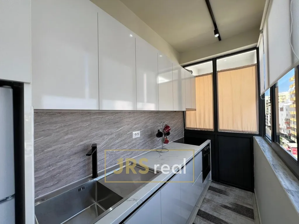 Ve výhradním zastoupení majitele nabízíme k prodeji zařízený byt o dispozici 2+kk a velikosti 56 m², který se nachází v 5. patře cihlové budovy s výtahem v oblíbené lokalitě Iliria Beach v Durrësu. Byt je ve velmi dobrém stavu, plně vybavený a promyšlený do posledního detailu, což z něj činí ideální volbu pro komfortní bydlení nebo rekreační využití. Ze vstupní chodby se šatní skříní a zrcadlem je vstup do koupelny a obývacího pokoje. Součástí koupelny je sprchový kout, umyvadlo s úložnou skříňkou, zrcadlo, pračka a WC. Obývací pokoj je vybaven prostornou sedačkou, konferenčním stolkem, obývací stěnou s televizním stolkem a klimatizací. Z něj je vstup do kuchyně a ložnice. Kuchyně disponuje kuchyňskou linkou, sporákem, vestavěnou troubou a lednicí s mrazákem. Ložnice je vybavena manželskou postelí, prostornou šatní skříní, nočními stolky, toaletním stolkem se zrcadlem, klimatizací a přímým vstupem na balkon s posezením a výhledem na město.