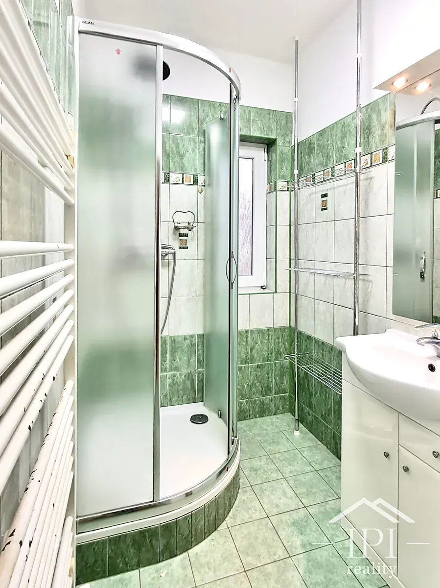 Byt se skládá z prostorné předsíně, dvou pokojů, z kuchyně s prostornou kuchyňskou linkou s veškerými spotřebiči i z koupelny se sprchovým koutem, toaleta s umyvadlem a pračkou je zvlášť. Byt je vybaven, což umožňuje snadné nastěhování.