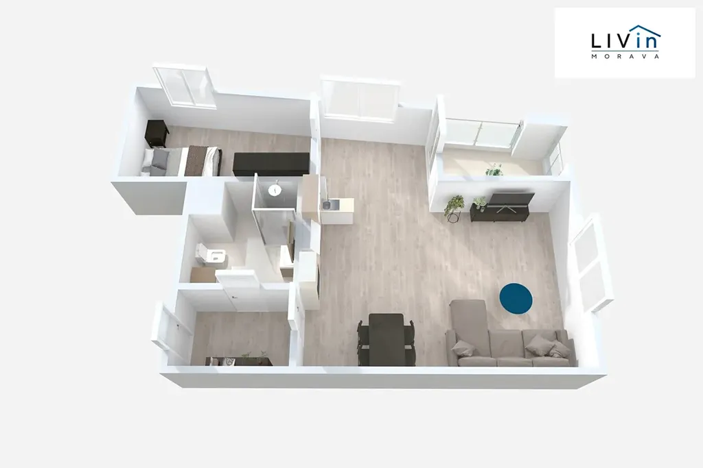 Byt je vhodný pro jednotlivce či pár. Volný od 1. března 2026.