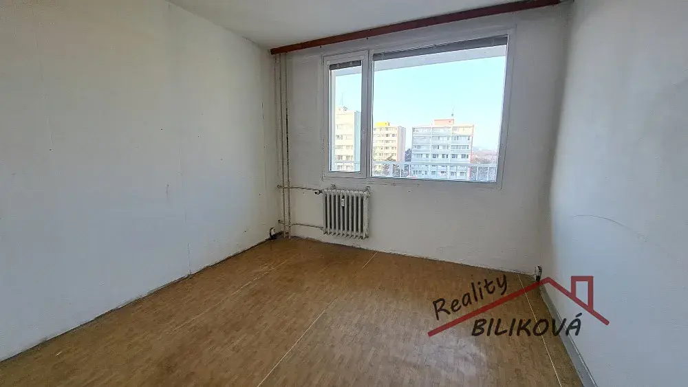 Dispozice bytu: předsíň (10,7m2), obývací pokoj (20,5m2) se vstupem na lodžii, kuchyň (9,6m2), pokoj (12,5m2) se vstupem na druhou lodžii, pokoj (10m2), koupelna a WC.