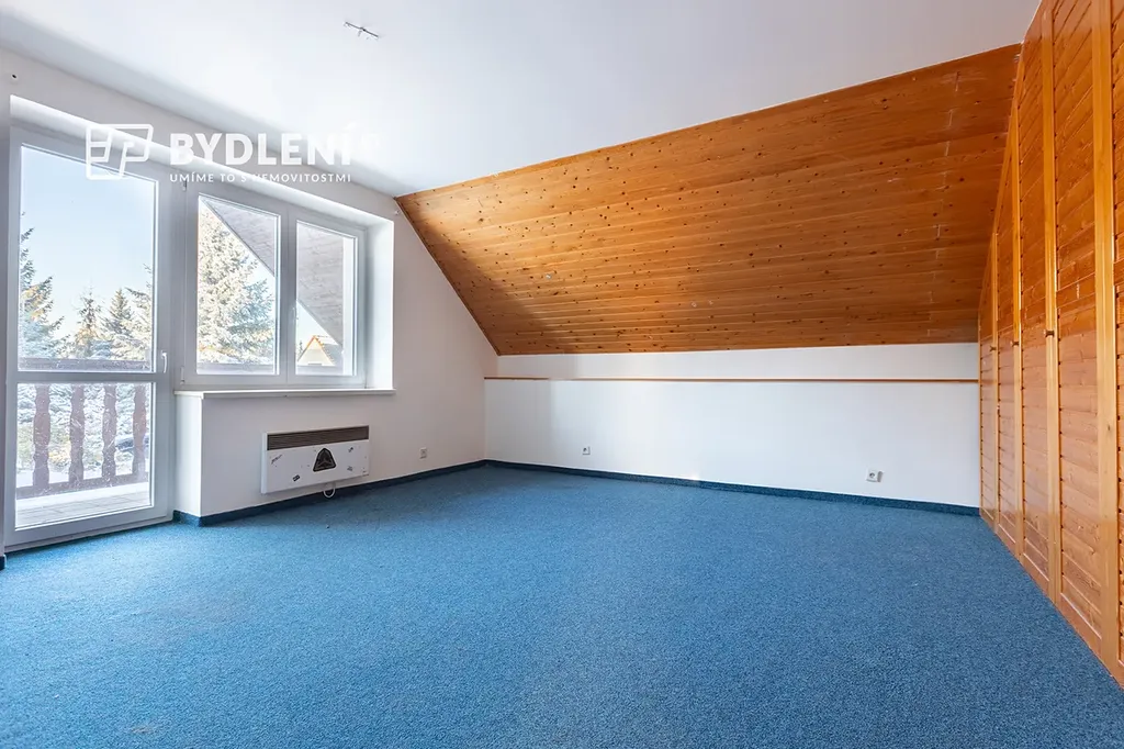 Druhé nadzemní podlaží nabízí tři další pokoje a druhou koupelnu, což poskytuje dostatek soukromí pro jednotlivé členy rodiny, hosty nebo práci z domova.