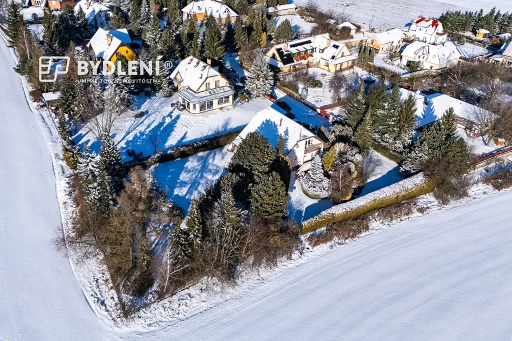 Dům se nachází v Zahořanech, přibližně dvacet pět minut jízdy od Prahy, na konci slepé ulice, což zajišťuje klid, minimum provozu a ničím nerušené výhledy do okolní přírody. Právě kombinace dostupnosti hlavního města a absolutního soukromí je dnes velmi vzácná.