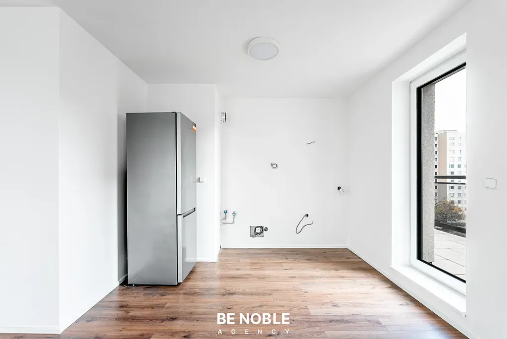 Obývací pokoj je velmi prostorný a je zde připravená zóna pro instalaci kuchyně se všemi potřebnými vývody. Z obývacího pokoje je také vstup na velkou terasu o velikosti 23,1 m². Rozlehlá terasa umožňuje rozdělit prostor na více funkčních zón – od grilování až po pohodlné relaxační posezení.