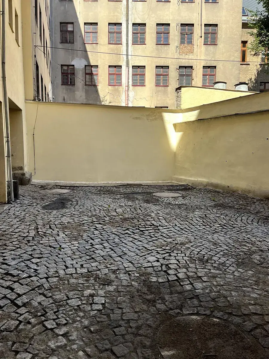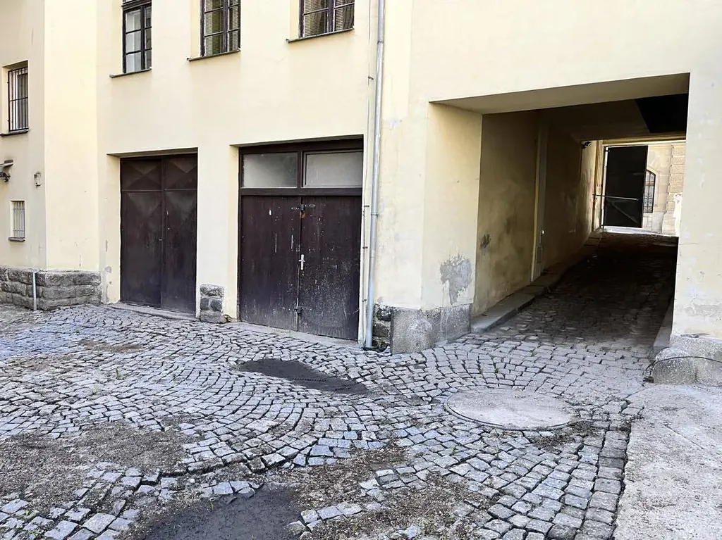 Garáž je v uzavřeném dvoře činžovního domu a vjezd z ulice je uzavřen plechovou bránou. Garáž je ve velmi dobrém stavu, má dřevěná dvojdílná uzamykatelná vrata a je zde možnost napojení na elektřinu. Možnost i jako skladovací prostor. K dispozici je ihned.