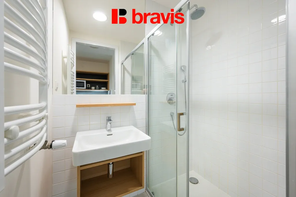Kompletně zařízené studio o velikosti 24 m² je skvělou volbou pro studenty či začínající pracující. Lze pronajmout i krátkodobě již od jednoho měsíce.