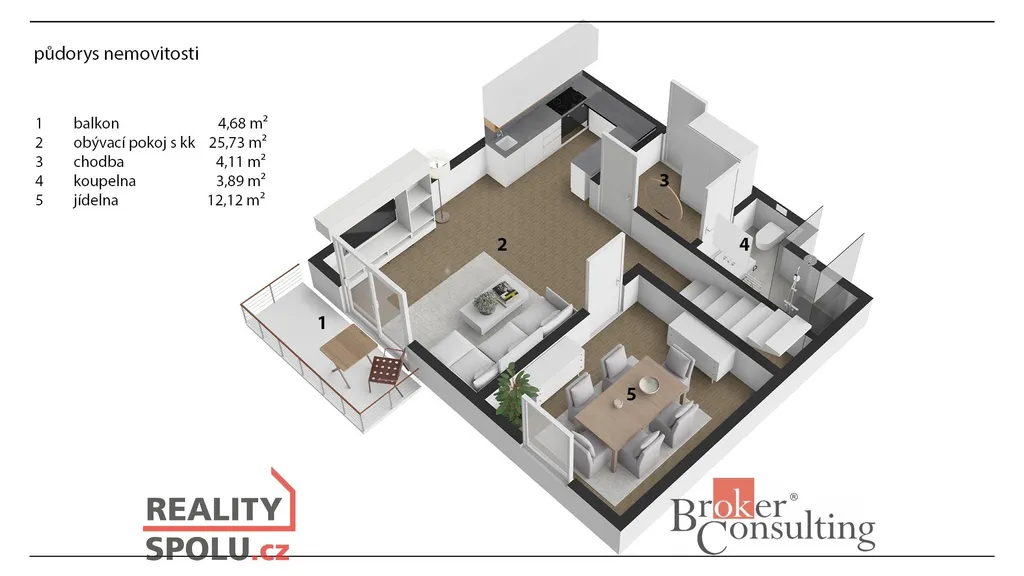 Součástí vybavení bytu bude rovněž televize, která není zobrazena na fotografiích.