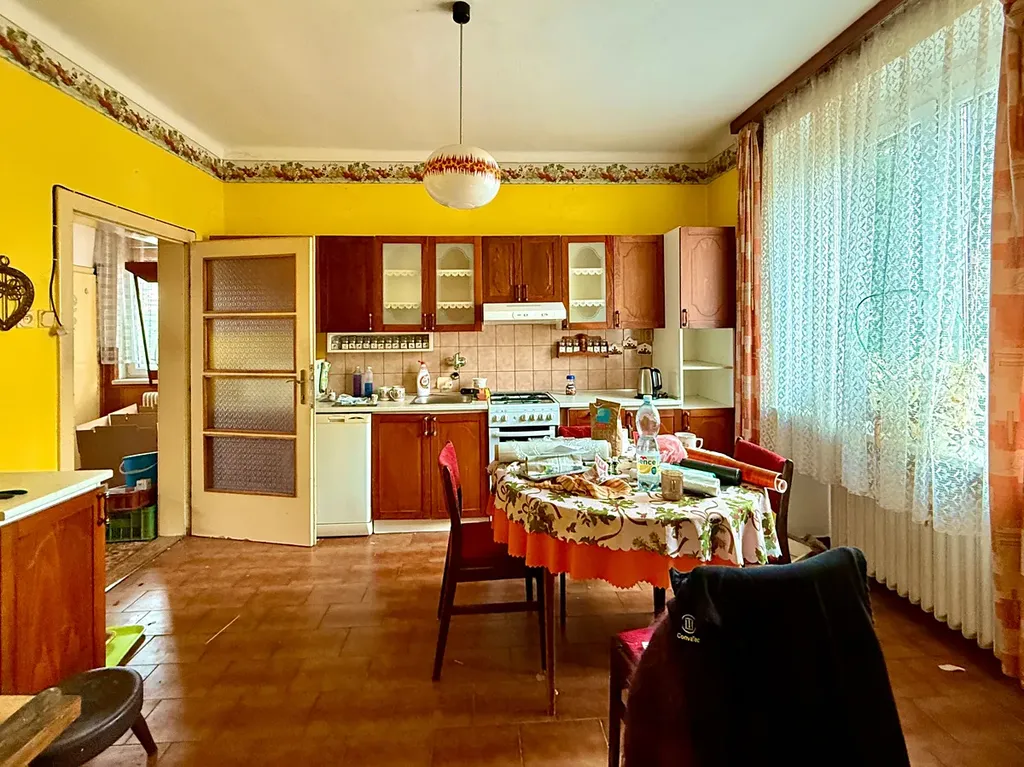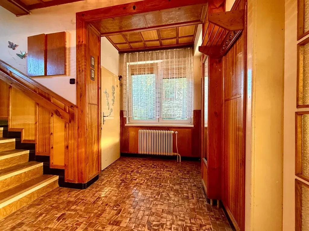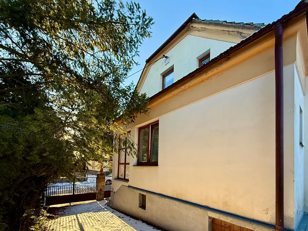 Ve výhradním zastoupení nabízíme k prodeji starší, podsklepený rodinný dům na Dukelské ulici v Třebíči. Jedná se o polovinu dvojdomku, který je součástí pozemků o celkové výměře 492 m2 a kromě zděné kolny (dřevník) je jejich součástí i samostatně stojící garáž se skladem o zastavěné pl. 37 m2. Původní dispozice objektu je 5+1, ale poslední majitelé ho užívali jako dvě bytové jednotky se dvěmi kuchyněmi a společnou koupelnou a WC umístěnými v centrální hale domu. Stavba je napojena na veškeré inženýrské sítě, ale technický stav je takový, že se předpokládá celková rekonstrukce a modernizace. Nabízené nemovité věci se nacházejí ve vyhledávané třebíčské rezidenční čtvrti, která se rozprostírá v blízkosti centra města, v dosahu kvalitní občanské vybavenosti a v bezprostřední blízkosti významných třebíčských památek (sousedící čtvrť Zámostí a blízko stojící Bazilika sv. Prokopa jsou zapsány v seznamu památek UNESCO).