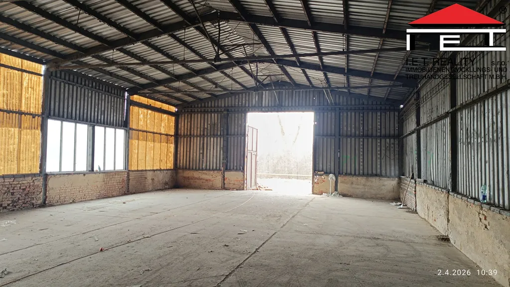 Hala je přístupná 2 vraty (dvoukřídlé) s možností parkování strojů před halou.