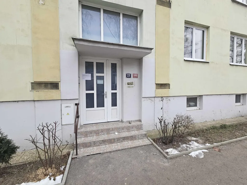 Při vstupu do bytu se dostanete na centrální chodbu, ze které pak následně do jednotlivých pokojů. Byt disponuje samostatnou kuchyní, obývacím pokojem, ložnicí a také dětským pokojem. Bytové jádro je ještě původní, umakartové. Součástí bytové jednotky je také balkon s orientací do klidné části, směrem k přilehlé školce. K dispozici je samostatná toaleta a koupelna s vanou.