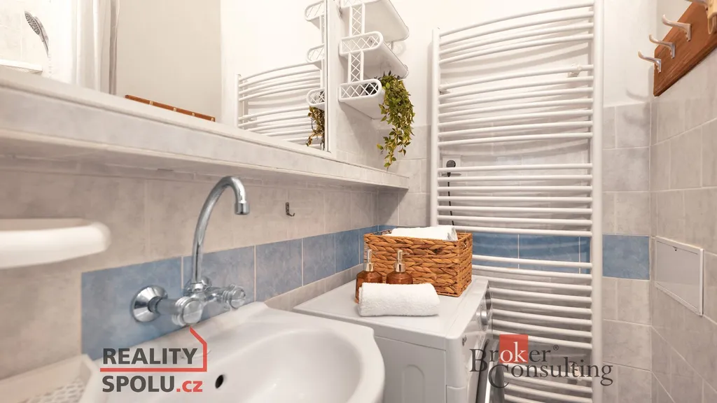 Vytápění i ohřev vody zajišťuje vlastní plynový kotel, komfort v letních měsících zvyšuje klimatizační jednotka. K bytu náleží sklep a vlastní vyhrazené parkovací místo, což je v této lokalitě významná výhoda. Byt se prodává částečně vybavený.