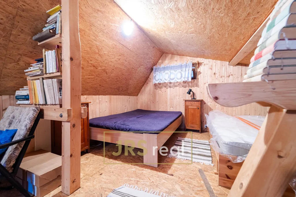 Ve výhradním zastoupení majitele nabízíme k prodeji udržovanou chatu o celkové užitné ploše cca 57 m², situovanou v chatové oblasti v Ivančicích nedaleko Brna. Chata je prakticky rozdělena na dvě části, které nejsou průchozí. Levá část chaty je obytná. Vchodové dveře vedou přímo do hlavní obytné místnosti, kde se nachází kuchyně s obývacím pokojem. Z této místnosti je vstup do koupelny vybavené toaletou, umyvadlem a vanou. Po schodech se dostaneme do podkroví, které je využíváno jako prostorná ložnice s jednolůžkovou a dvoulůžkovou postelí. Pravá část chaty je v současnosti využívána jako skladový prostor, nicméně nabízí možnost přestavby na další obytnou část, například pokoj pro hosty či zázemí pro rodinu. U chaty vede vodovodní řád, který je vedený v komunikaci před pozemkem. Vytápění je řešeno pomocí krbových kamen a přímotopů, což zajišťuje dostatek tepla i v chladnějších měsících. Ve venkovní části je k dispozici příjemné posezení s venkovním krbem, ideální pro relaxaci a trávení volného času. Chata se nachází v těsné blízkosti řeky, která podtrhuje klidnou rekreační atmosféru místa. V případě zájmu kontaktujte makléře.