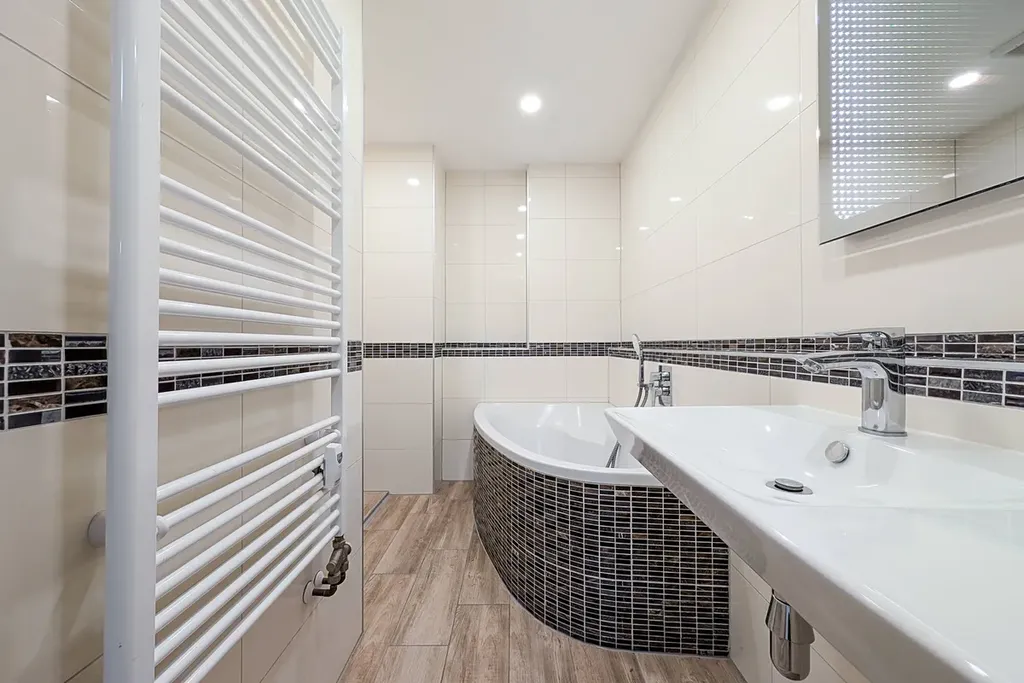 Byt prošel rekonstrukcí a nabízí praktické uspořádání prostor, které se snadno přizpůsobí každodennímu provozu. Po vstupu do bytu vás přivítá rozměrná chodba s vestavěnou skříní, poskytující dostatek místa pro uložení oblečení i dalších věcí. Koupelna je vybavena rohovou vanou a pračkou, která je k dispozici v rámci pronájmu. Toaleta je řešena samostatně, což je pohodlné a funkční řešení zejména při běžném provozu domácnosti.