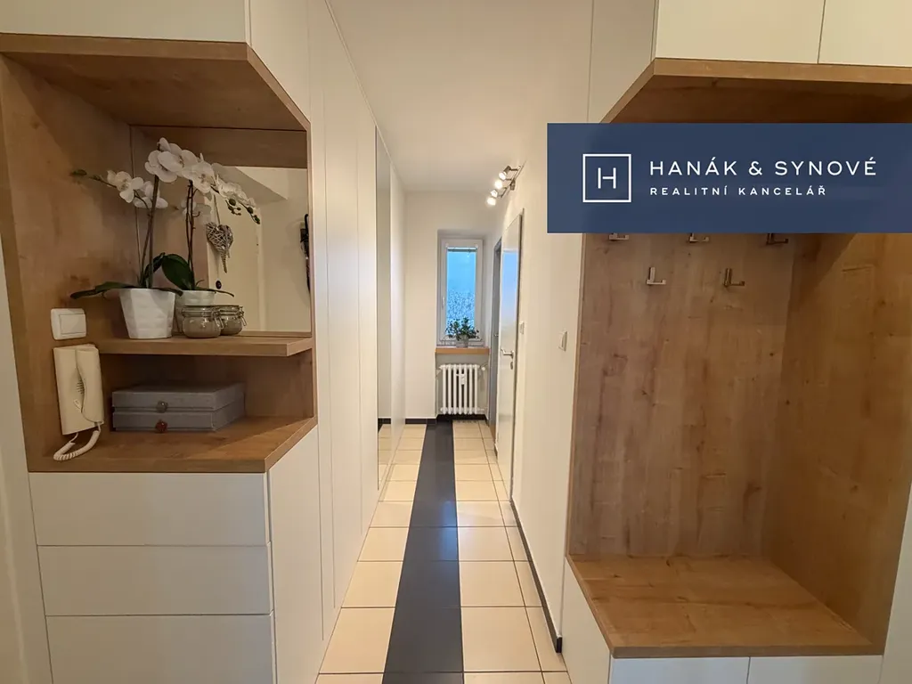 Jednotka je zařízená ve vysokém standardu a je nabízena plně zařízená – kuchyňská linka se spotřebiči (varná deska, digestoř, trouba, lednice s mrazákem, sušička, myčka). V chodbě se nachází vestavěné skříně, poličky a botník. V obývacím pokoji s oddělenou spacím prostorem je k dispozici, televizní stěna s TV, gauč, konferenční stolek, skřínky a postel. Druhý pokoj je nabízen vyklizený k zařízení dle potřeb nájemce.
