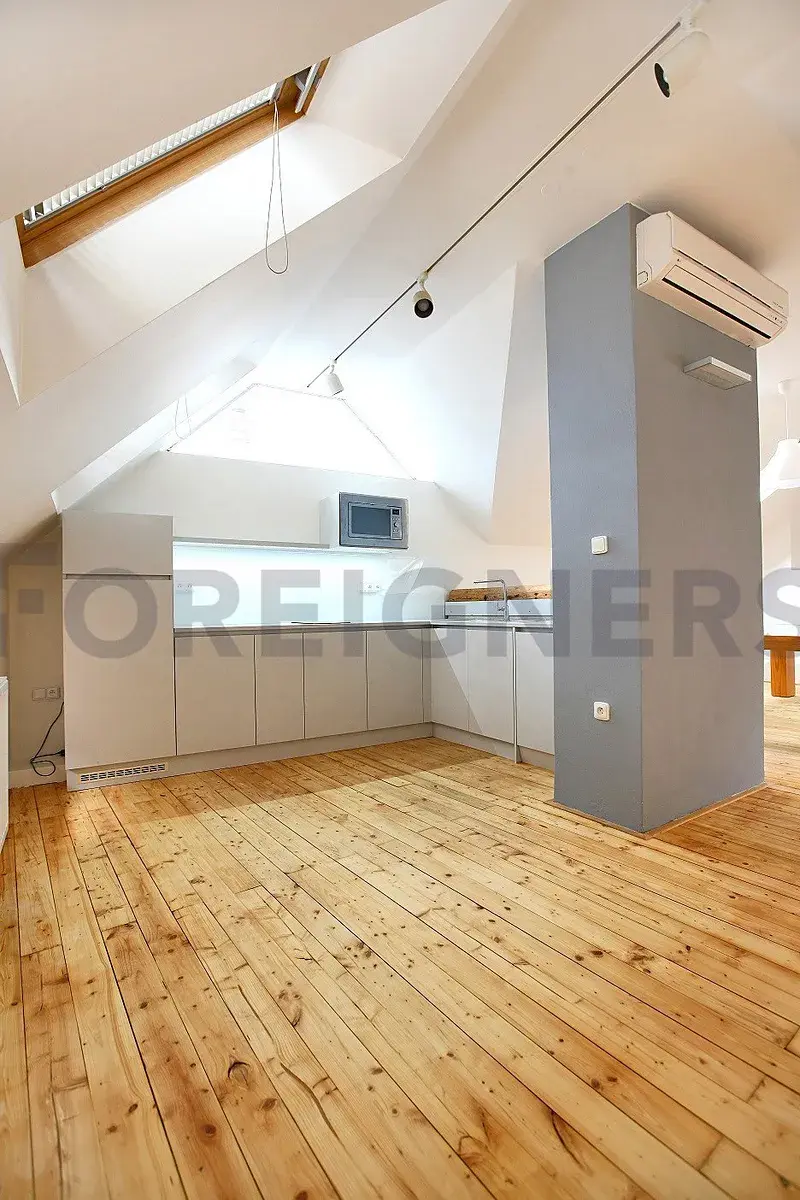 Velikost tohoto slunečného 3+kk bytu je 95 m2 a je umístěn ve druhém patře.