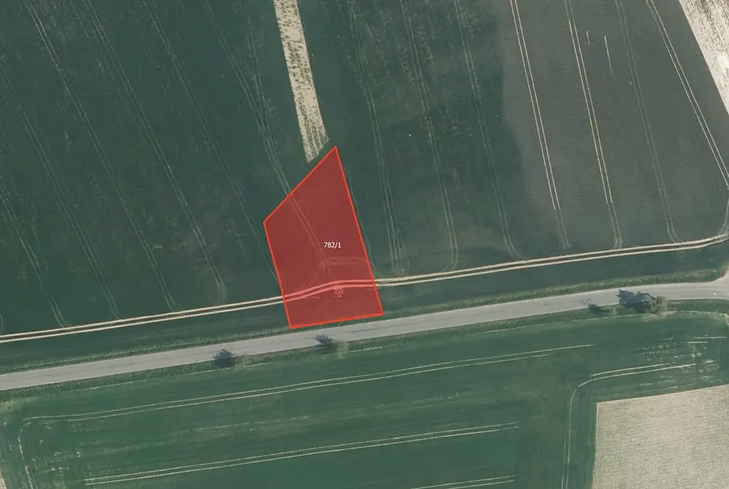 parc. č. 782/1 – k.ú. Myslejovice, orná půda, celková výměra 1 799 m², prodávaný podíl činí 1 349 m² (LV 557)