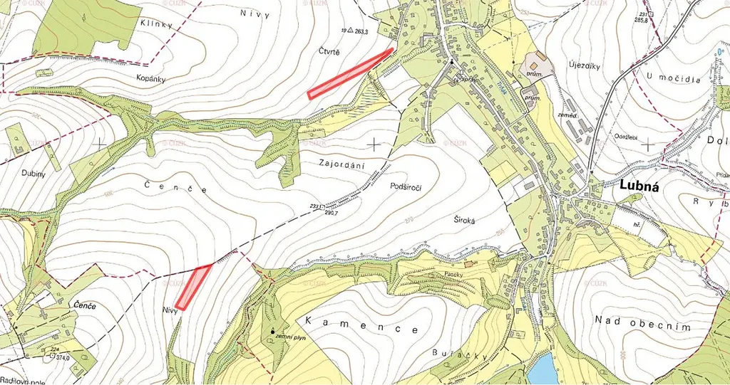 Druhá parcela leží v katastru Lubná u Kroměříže, list vlastnictví č. 467. Pozemek má parcelní číslo 2846 a výměru 7 847 m².