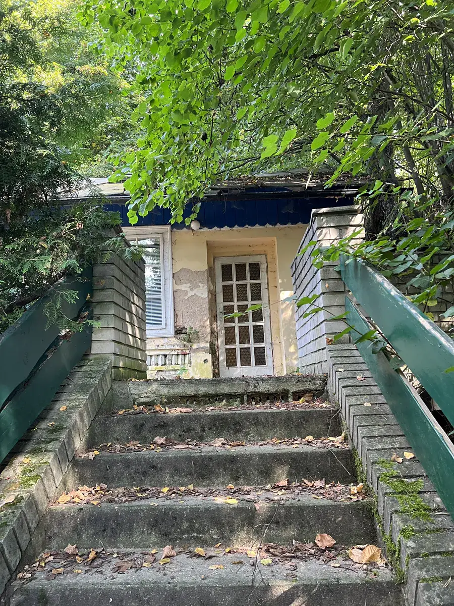 Dále nalezneme v objektu vedlejší budovu – menší domek s garáží s číslem popisným, který je zkolaudovaný jako nemovitost k bydlení. Předchozí využití bylo ubytování pro správce objektu. Jedná se o patrovou budovu, ve které se nachází bytová jednotka, prostorná garáž se zázemím a sklad včetně obytné střechy. Tato budova je vhodná k rekonstrukci, má velký potenciál k vybudování menšího RD, který je již zkolaudován.