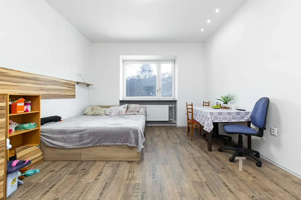 Nabízíme k prodeji prostorný byt 2+1 v osobním vlastnictvím se spoluvlastnictvím okolního pozemku o velikosti 730 m2. Byt disponuje dostatkem úložného prostoru. Nachází se ve zvýšeném přízemí zděného bytového domu. Na bytové jednotce byla provedena rekonstrukce, která obsahovala: nový rozvod elektřiny, vody, odpadů, rozvodů topení, osazení nových radiátorů, vnitřní omítky, SDK podhledy, rekonstrukci koupelny, WC, položení krytiny podlah, osazení plastových oken a vstupních dveří.