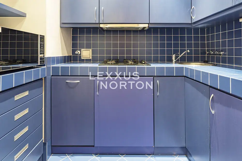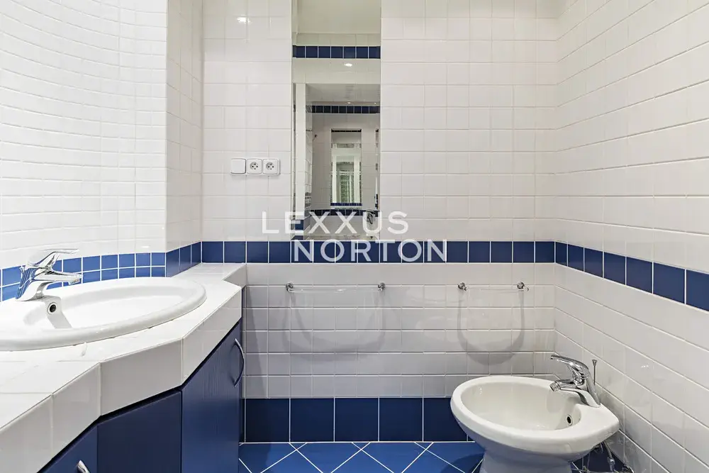 Byt nabízí plně vybavenou kuchyni (trouba, lednice, mrazák, myčka nádobí, sklokeramická deska), obývací pokoj s jídelním prostorem a sedací soupravou a komodou, ložnici s postelí a vestavěnými skříněmi a koupelnu s vanou, toaletou a bidetem.