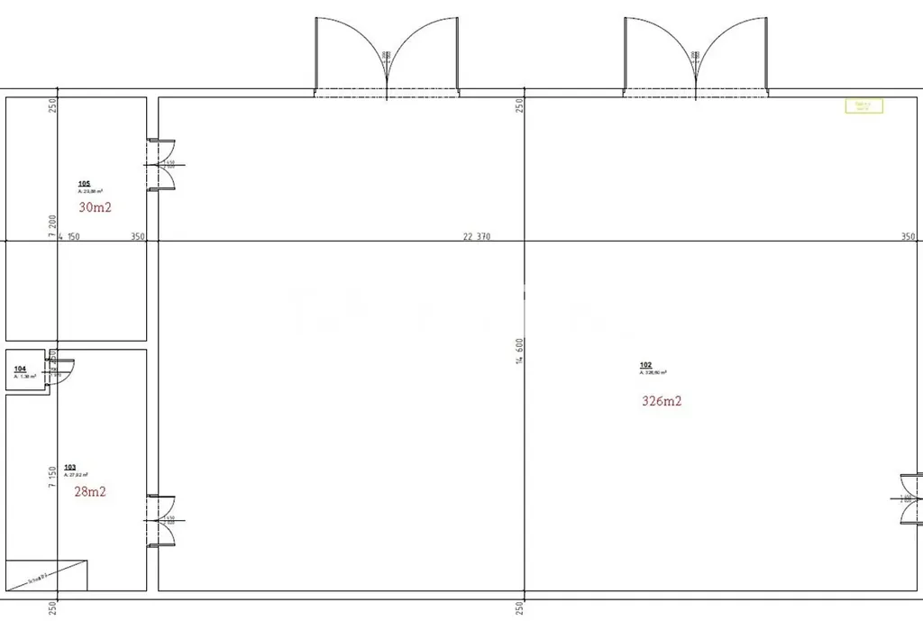 Prostory disponují dvojími vraty s rozměry 4m x 3m a výškou stropu 5,5m. Prostory tvoří 326m2 skladovací plochy a dvě místnosti (30m2 a 28m2), které mohu být užívány jako kancelář, šatna s kuchyňkou a menší příruční sklad případně další využití dle vašich potřeb.