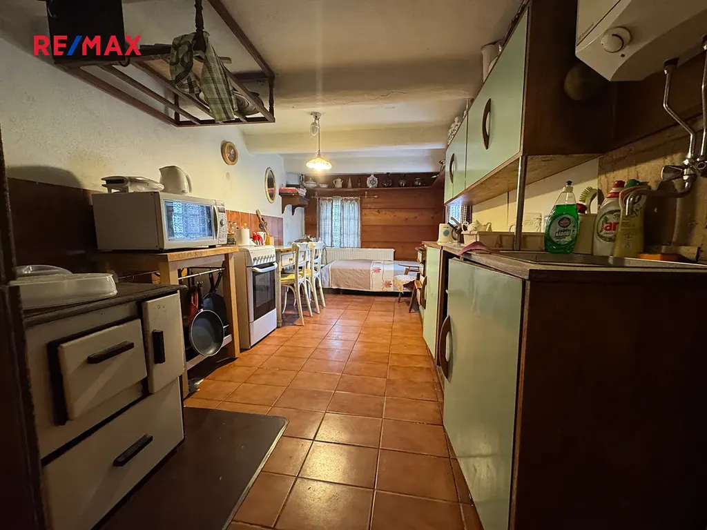 Dvoupodlažní budova dispozičně řešená jako 4+1 sestává v přízemí z kuchyně (16m2), zasedací místnosti (22m2), ložnice (16m2), samostatné WC (1,5m2), koupelny (2m2), spíže (6m2) a chodby (16m2). Schodištěm se dostaneme do prvního patra, kde je jeden menší pokoj (8m2) a velký pokoj (20m2). Vytápění je možné jak plynovým kondenzačním kotlem, tak kamny, která jsou ve všech místnostech. Nad novější cihlovou přístavbou je rozsáhlá půda. Chalupa má také menší sklípek (2,5m2) pro uchování potravin. Na malebné zahradě s vřesovištěm je postaveno posezení a kůlna. Chalupa je pravidelně udržovaná bez nutných investic ihned k užívání a celoročně dostupná po udržované obecní komunikaci.