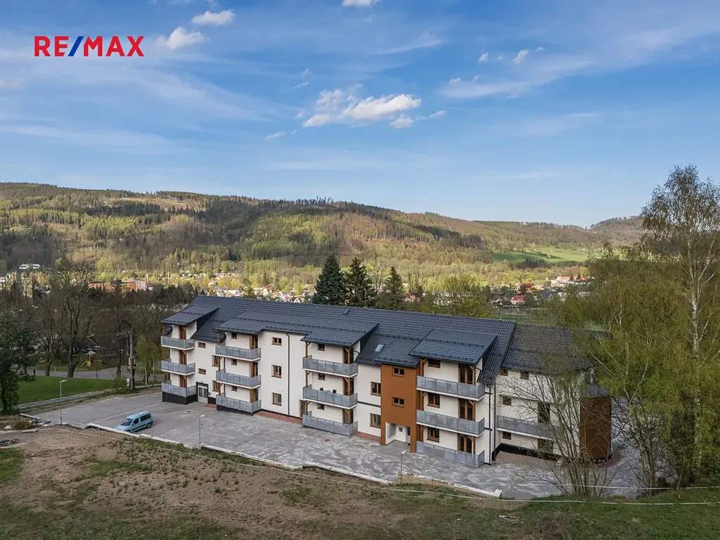 Nabízíme k prodeji podhorský apartmánový byt se dvěma terasami ve městě Vrbno pod Pradědem, nově postavený s důrazem na kvalitní provedení. Byt nabízí komfort trvalého bydlení v srdci přírody a krásný výhled na pohoří Jeseníků. Je vybaven sklepní kójí, lyžárnou, terasou a parkovacím stáním v ceně. Jeho orientace je na jihozápad, což zajišťuje dostatek slunečního svitu a nachází se v prvním nadzemním podlaží. Byt je napojen na městský vodovod a kanalizaci a v každé místnosti je podlahové vytápění pro maximální komfort.