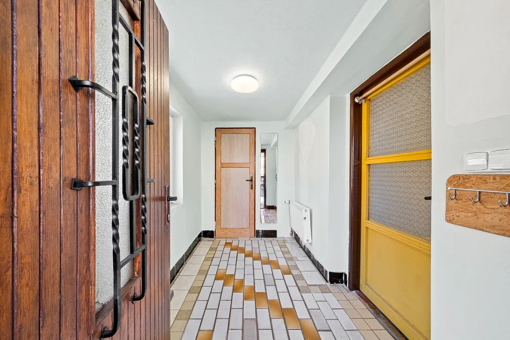 Vstup do domu vede do zádveří. Odtud je přístupná technická místnost s plynovým kotlem. Ze zádveří se dále vstupuje do centrální chodby.