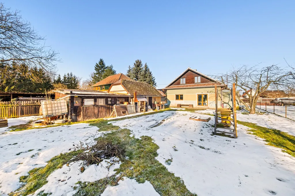 Na pozemku se nachází garáž s dílnou a zahradní domek. Parkování je možné na pozemku i před domem na nově vybudovaných veřejných parkovacích stáních.