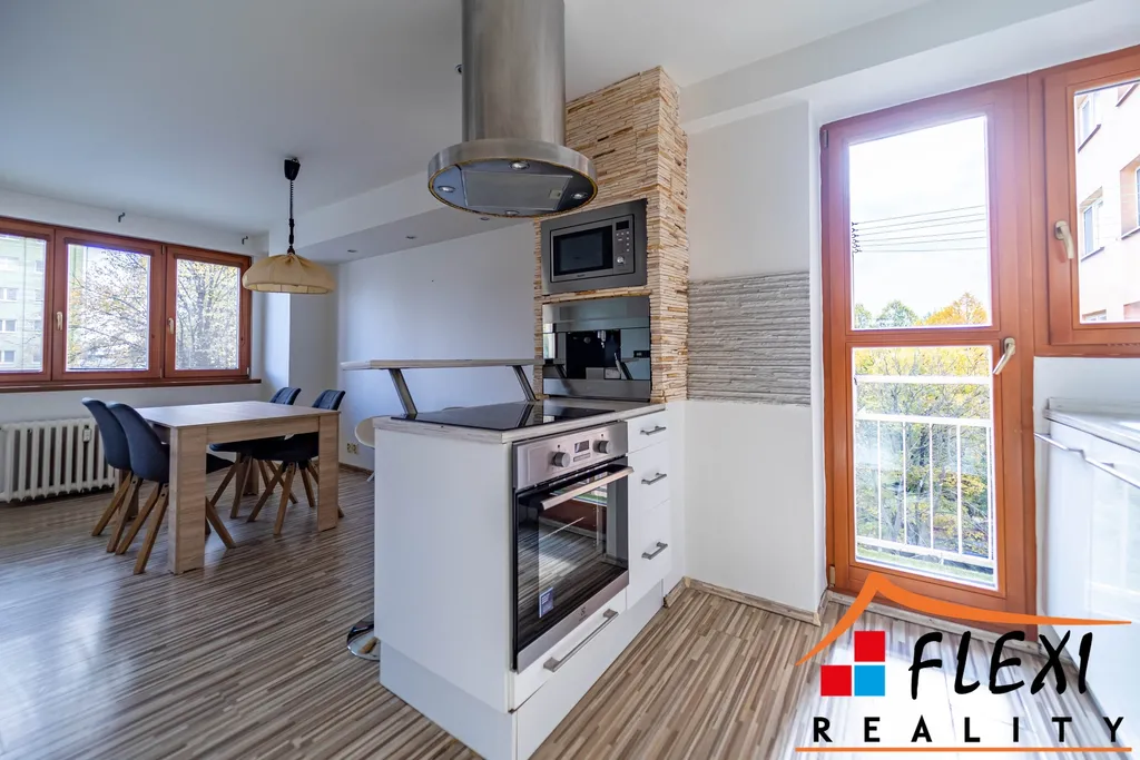 Byt je slunný, vzdušný, kuchyňský kout je příjemně propojen s obývací části. Koupelna je spojená s toaletou a je vybavena vanou. Zařízení, které vidíte na fotografiích, zůstává k dispozici nájemci.