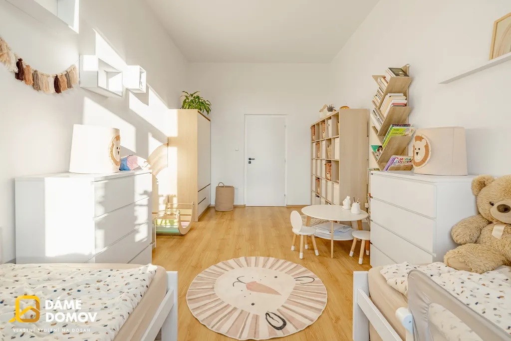 Byt působí velmi světle a příjemně a je ideální pro rodinné bydlení.