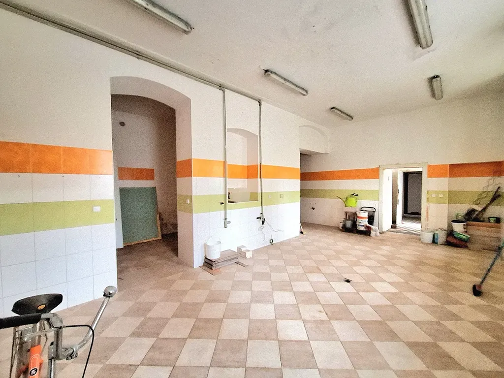 1.NP: 5+kk, koupelna s vanou a sprchovým koutem, WC, vstupní hala, technické místnost (bývalá výrobna Cideru), schodiště
