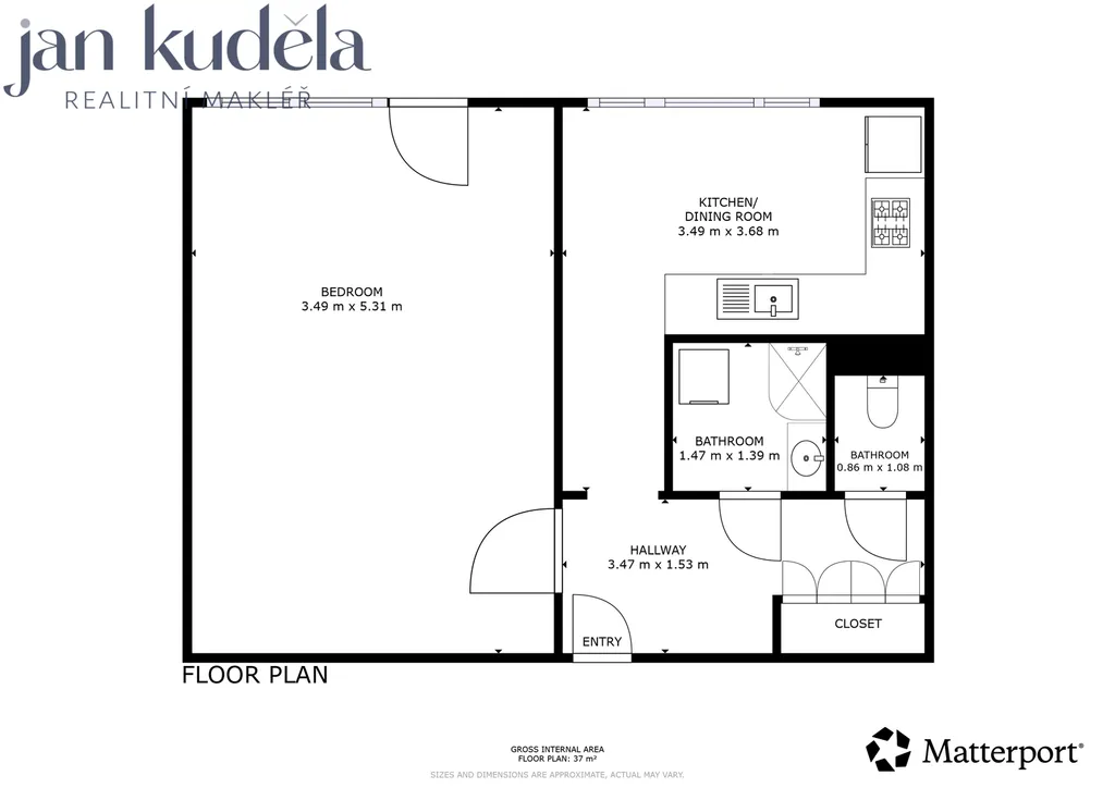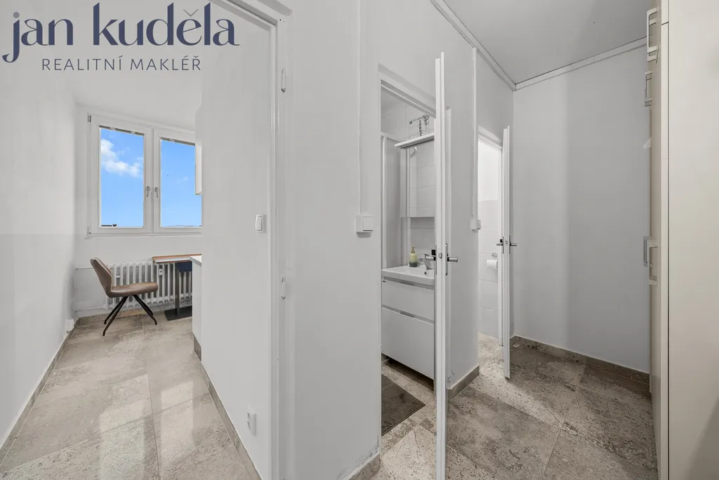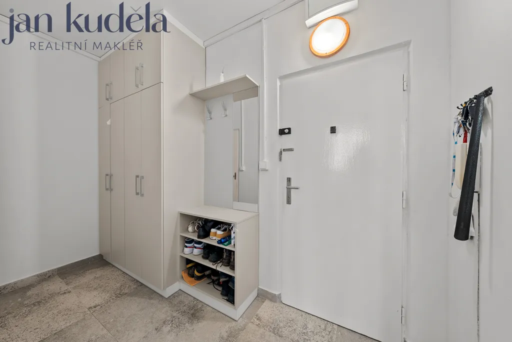 Byt má celkovou podlahovou plochu 35,6 m² a náleží k němu balkon a sklepní kóje. V roce 2024 prošel kompletní rekonstrukcí, včetně vyzděného jádra, nové elektroinstalace a nové kuchyňské linky vyrobené na míru. Dispozice je velmi praktická. Ze vstupní předsíně je samostatný vstup do koupelny, na toaletu, do kuchyně a do hlavního pokoje, ze kterého je vstup na balkon.