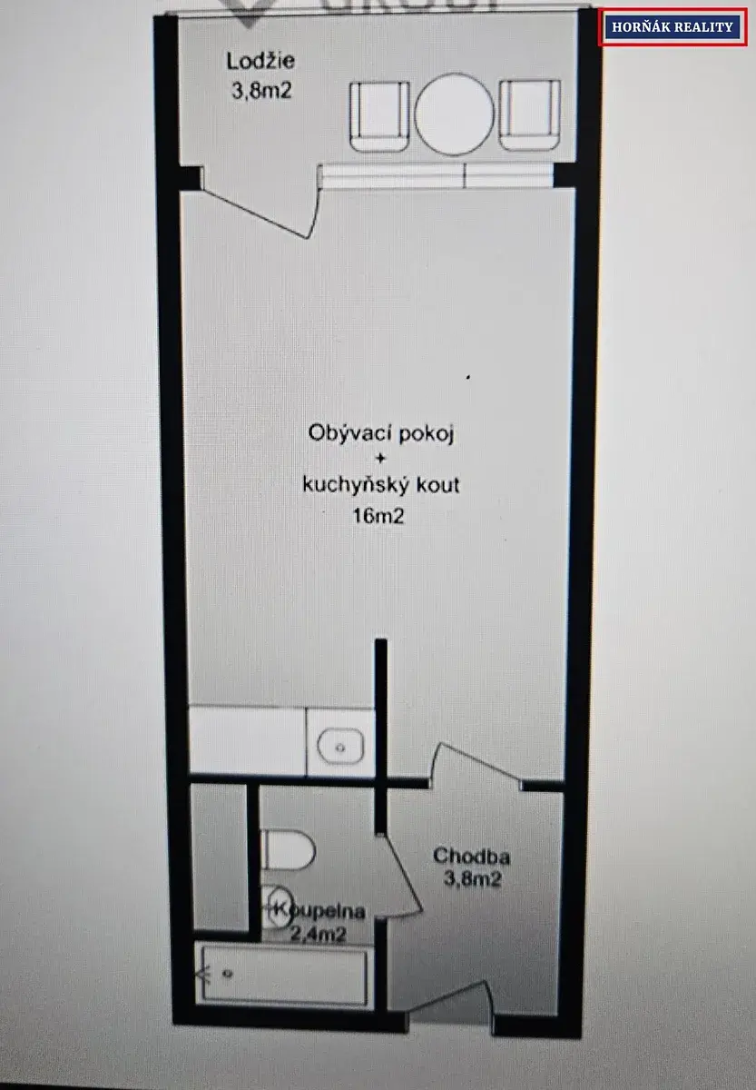 Bytová jednotka má kompaktní vyhledávanou dispozici 1+kk. Skládá se ze vstupní předsíně, obývacího pokoje s přípravou pro kuchyňskou linku, lodžií orientovanou na východ ( atraktivní výhled ), koupelny s toaletou, umyvadlem a praktickým sprchovým koutem.