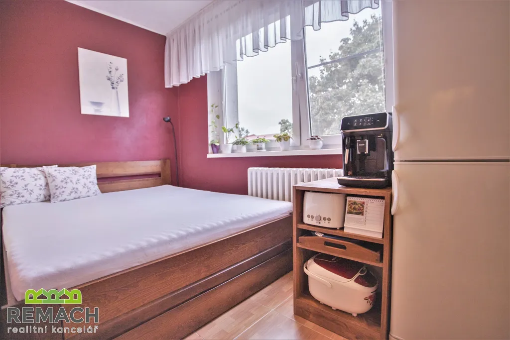 Kompletně zrekonstruovaný byt o dispozici 2+1 a rozloze 61 m2, s prostornou lodžií o rozloze 6 m2, nacházející se v posledním patře kompletně revitalizovaného domu. Byt zůstává kompletně vybaven (vyjma TV a kávovaru). V obývacím pokoji o rozloze 19 m2 je klimatizace a jídelní kout, díky tomu zůstal v bytě další spací prostor. Z obývacího pokoje je vstup na lodžii, která nabízí soukromí s pěkným výhledem. Ložnice má plochu 16 m2, WC je samostatné, odděleno od nové koupelny.