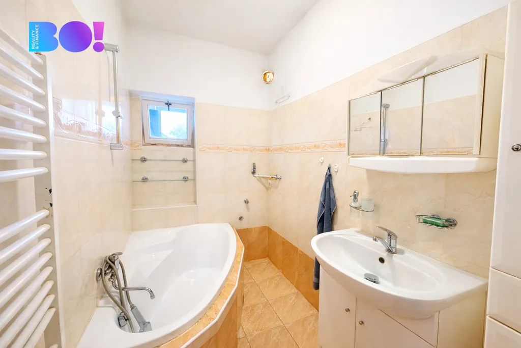 Nemovitost je podsklepená a součástí je garáž, dvě menší zahrady a zahradní domek s pergolou, které poskytují dostatek soukromí i prostoru k relaxaci.