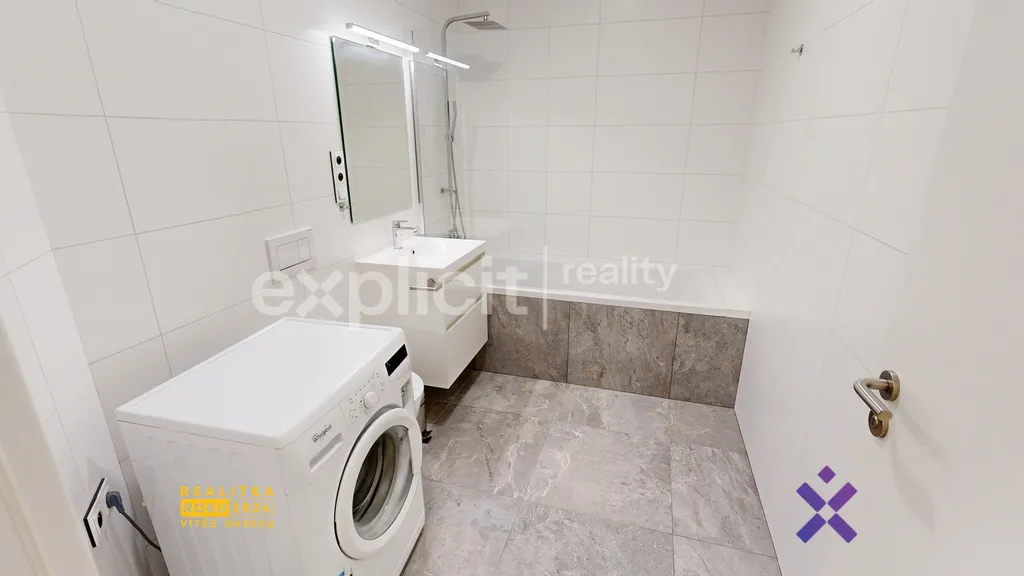 V bytě je podlahové vytápění, tři klimatizační jednotky, zabezpečovací alarm a elektrické venkovní rolety. Dispozice bytu: vstupní chodba, koupelna s vanou a WC, samostatné WC s umyvadlem, kuchyň, obývací pokoj a ložnice.