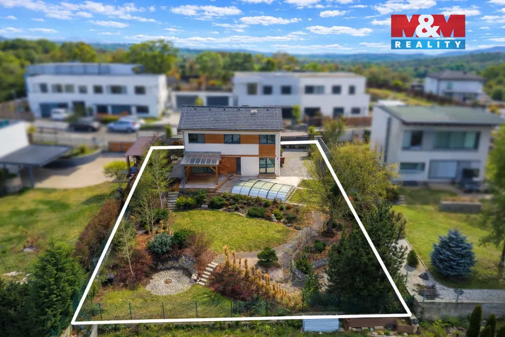 O každodenní komfort se stará podlahové vytápění, klimatizace a rekuperace vzduchu. Na zahradě vás potěší terasa, vyhřívaný bazén a relaxační zóna pro posezení, kde si užijete soukromí i klid. Parkování je zajištěno přímo na pozemku vedle domu.